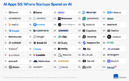 同时,在a16z联手Mercury发布的AI研究报告中,也清晰揭示了另一端的变化——在初创公司对AI的支出中,基础设施与大模型固然重要,但行业应用组件与垂直工具,尤其是金融与交易领域的投入,正以前所未有的速度增长,成为资本真正“愿意买单”的部分。
